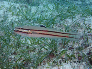 クロイトハゼ 和名:クロイトハゼ 英名:Twostripe Goby 学名:Valenciennea helsdingenii 体長:約15㎝ 生息環境:サンゴ礁域の砂地 生息水深:10~20m 成魚 あいうえお あいうえお 若魚