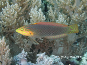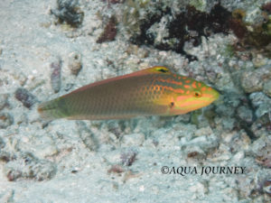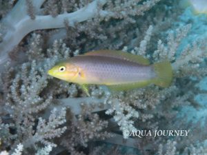 グリーン・ラス 和名:なし 英名:Green Wrasse 学名:Halichoeres solorensis 体長:約15㎝ 生息環境:サンゴ礁域 生息水深:10~20m 成魚(オス) あいうえお あいうえお 成魚(メス) 成魚(メス)