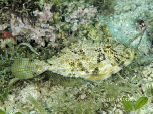 コクテンハギ 和名:コクテンハギ 英名:Strap-weed File-fish 学名:Pseudomonacanthus macrurus 体長:約25㎝ 生息環境:サンゴ礁域 生息水深:10~20m あいうえお あいうえお