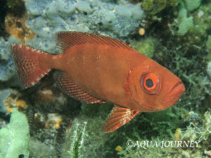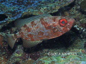 ゴマヒレキントキ 和名:ゴマヒレキントキ 英名:Blotched Bigeye 学名:Heteropriacanthus carolinus 体長:約25㎝ 生息環境:サンゴ礁域および内湾性の砂泥域 生息水深:3~15m あいうえお あいうえお