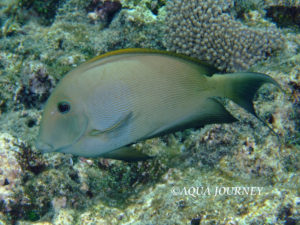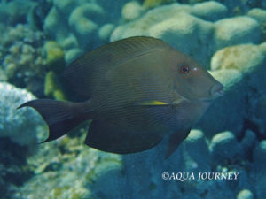 サザナミハギ 和名:サザナミハギ 英名:Striated Surgeonfish 学名:Ctenochaetus striatus 体長:約22㎝ 生息環境:サンゴ礁域 生息水深:10~20m 成魚 あいうえお あいうえお 成魚