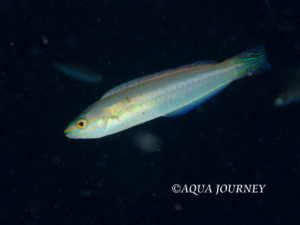 ショルダースポット・ラス 和名:なし 英名:Shoulder-spot Wrasse 学名:Leptojulis cyanopleura 体長:約15㎝ 生息環境:内湾性の砂泥域 生息水深:20~25m 成魚 あいうえお あいうえお 若魚