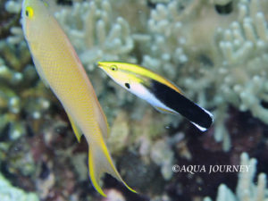 スミツキソメワケベラ 和名:スミツキソメワケベラ 英名: Blackspot Cleaner wrasse 学名:Labroides pectoralis 体長:約7㎝ 生息環境:サンゴ礁域 生息水深:10~15m あいうえお あいうえお