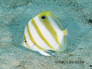 テンツキチョウチョウウオ 和名:テンツキチョウチョウウオ 英名:Sixspine Butterflyfish 学名:Chaetodon oligacanthus 体長:約15cm 生息環境:サンゴ礁域 生息水深:15~25m あいうえお あいうえお