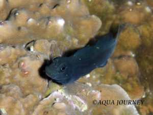 ニラミギンポ 和名:ニラミギンポ 英名:Black Comb-tooth 学名:Ecsenius namiyei 体長:約11㎝ 生息環境:サンゴ礁域の浅場 生息水深:5~15m あいうえお あいうえお