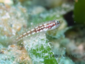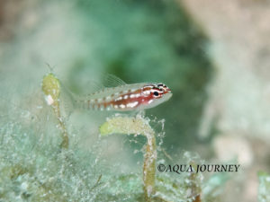 ハナグロイソハゼ 和名:ハナグロイソハゼ 英名:Shimada’s Dwarfgoby 学名:Eviota shimadai 体長:約2㎝ 生息環境:サンゴ礁域 生息水深:10~15m 成魚(オス) あいうえお あいうえお 成魚(メス)