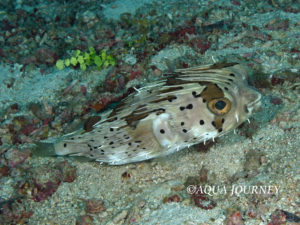 ハリセンボン 和名:ハリセンボン 英名:Longspine Porcupinefish 学名:Diodon holocanthus 体長:約30㎝ 生息環境:サンゴ礁域 生息水深:10~20m あいうえお あいうえお