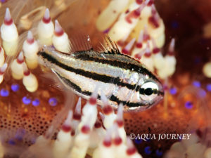 ヒカリイシモチ 和名:ヒカリイシモチ 英名:Tubifer Cardinalfish 学名:Siphamia tubifer 体長:約3cm 生息環境:ガンガゼの隙間など 生息水深:15~25m あいうえお あいうえお