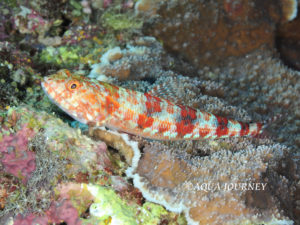 ヒトスジエソ 和名:ヒトスジエソ 英名:Variegated Lizardfish 学名:Synodus variegatus 体長:約25㎝ 生息環境:サンゴ礁域 生息水深:10~20m あいうえお あいうえお