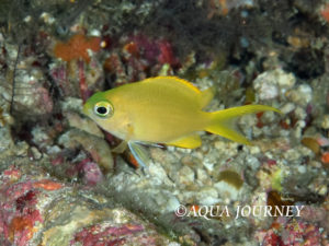 ヒマワリスズメダイ 和名:ヒマワリスズメダイ 英名:Yellow Chromis 学名:Chromis analis 体長:約12㎝ 生息環境:サンゴ礁域 生息水深:15~30m 成魚 あいうえお あいうえお 幼魚