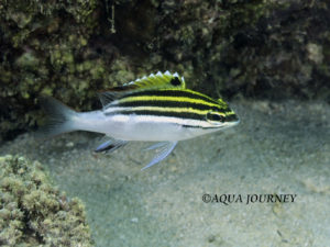 フタスジタマガシラ 和名:フタスジタマガシラ 英名:Two-lined Monocle bream 学名:Scolopsis bilineata 体長:約19㎝ 生息環境:サンゴ礁 生息水深:5~15m 成魚 あいうえお あいうえお 若魚 幼魚