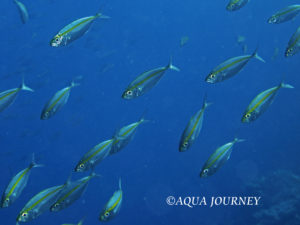 ホソヒラアジ 和名:ホソヒラアジ 英名:Yellowstripe Scad 学名:Selaroides leptolepis 体長:約20cm 生息環境:サンゴ礁域 生息水深:5~20m あいうえお あいうえお