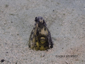 ホタテウミヘビ 和名:ホタテウミヘビ 英名:Highfin Snake eel 学名:Ophichthus altipennis 体長:約100cm(?) 生息環境:サンゴ礁域の砂地 生息水深:10~20m あいうえお あいうえお
