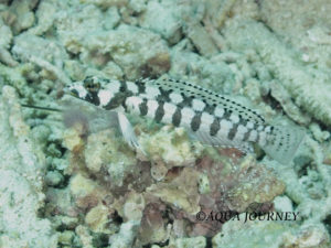 マダラトラギス 和名:マダラトラギス 英名:Reticulated Sandperch 学名:Parapercis tetracantha 体長:約18cm 生息環境:サンゴ礁域 生息水深:10~20m あいうえお あいうえお