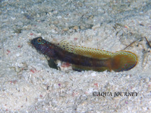 メタリック・シュリンプゴビー 和名:なし 英名:Metalic Shrimpgoby 学名:Amblyeleotris latifasciata 体長:約10㎝ 生息環境:サンゴ礁域の砂地 生息水深:30~40m あいうえお あいうえお