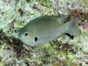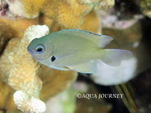 モンツキスズメダイ 和名:モンツキスズメダイ 英名:Alexander’s Damsel 学名:Pomacentrus alexanderae 体長:約10㎝ 生息環境:サンゴ礁域 生息水深:10~20m 成魚 あいうえお あいうえお 幼魚