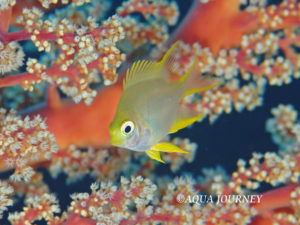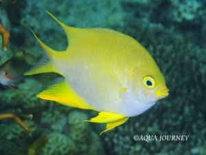 ヤマブキスズメダイ 和名:ヤマブキスズメダイ 英名:Golden Damselfish 学名:Amblyglyphidodon aureus 体長:約11㎝ 生息環境:サンゴ礁域 生息水深:10~25m 成魚 あいうえお あいうえお 幼魚