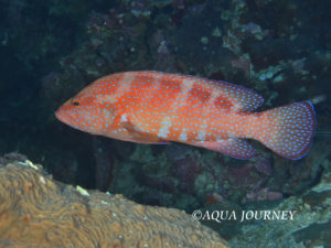 ユカタハタ 和名:ユカタハタ 英名:Coral Hind 学名:Cephalopholis miniata 体長:約30㎝ 生息環境:サンゴ礁域 生息水深:10~25m 成魚 あいうえお あいうえお 若魚