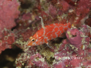 レッドブロッチド・パークレット 和名:なし 英名:Chequered PerchLet 学名:Plectranthias inermis 体長:約4cm 生息環境:サンゴ礁域のやや深場 生息水深:35~45m 写真提供:石野昇太さん あいうえお あいうえお