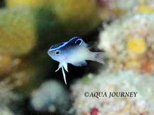 ローランズ・ドゥモアゼル 和名:なし 英名:Rolland’s Demoiselle 学名:Chrysiptera rollandi 体長:約5㎝ 生息環境:サンゴ礁域 生息水深:5~15m 成魚 あいうえお あいうえお 幼魚